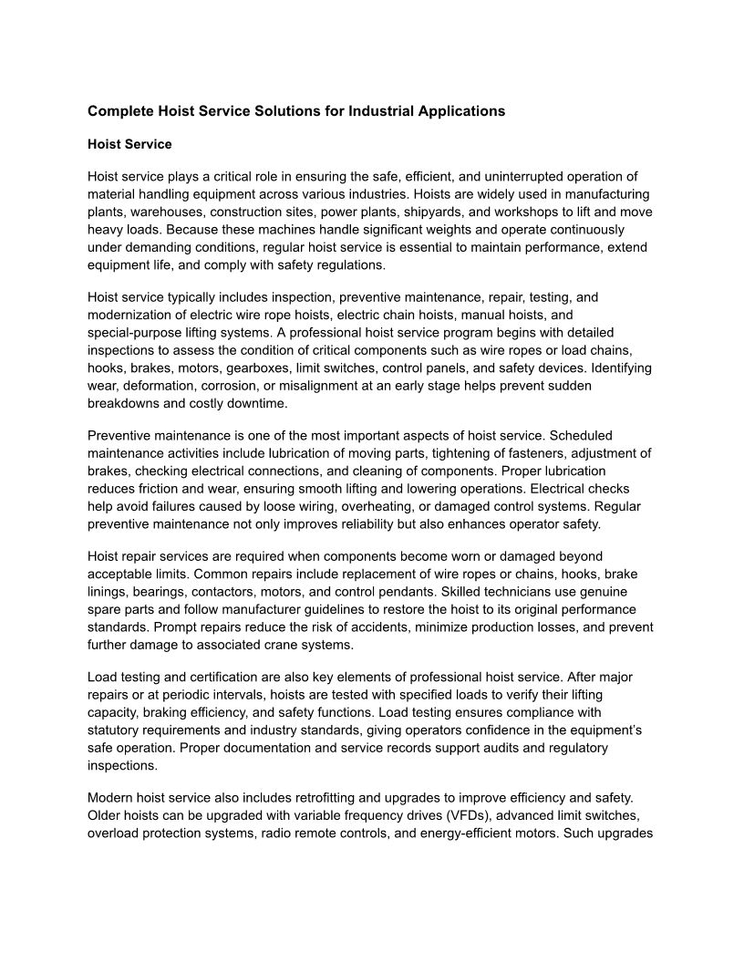 Crane and Hoist Services in ...