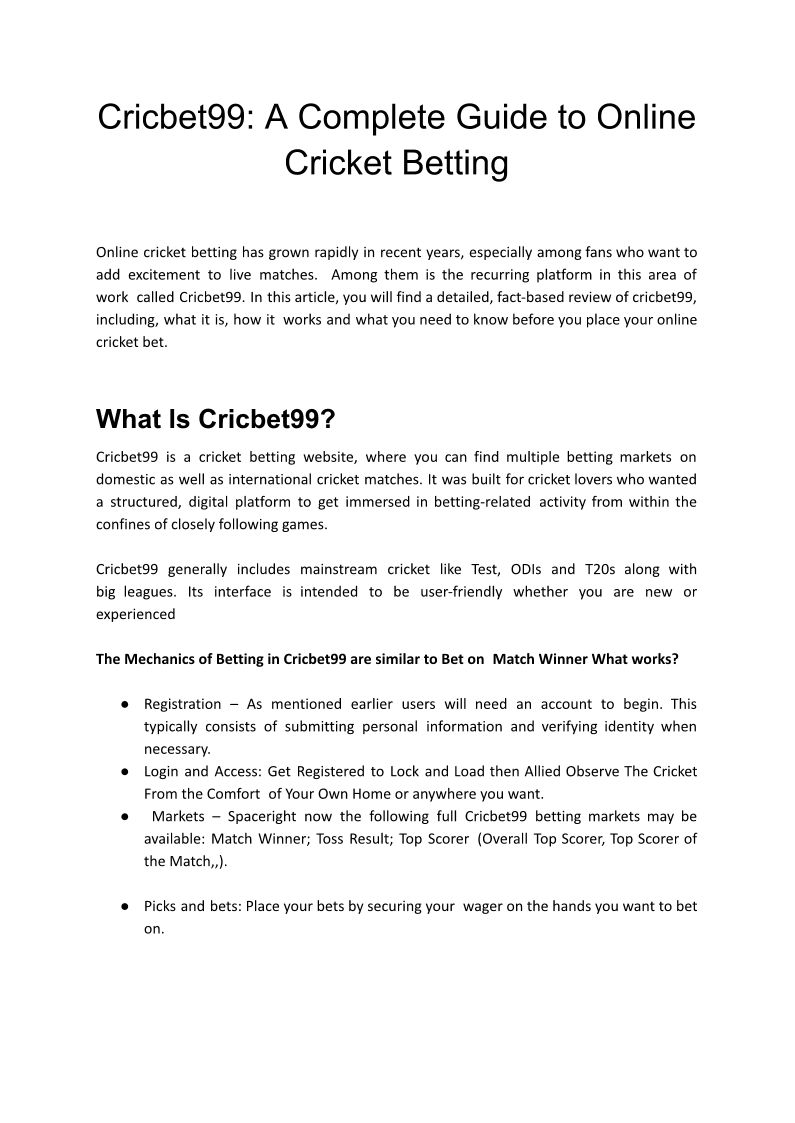 Cricbet99_ A Complete Guide ...