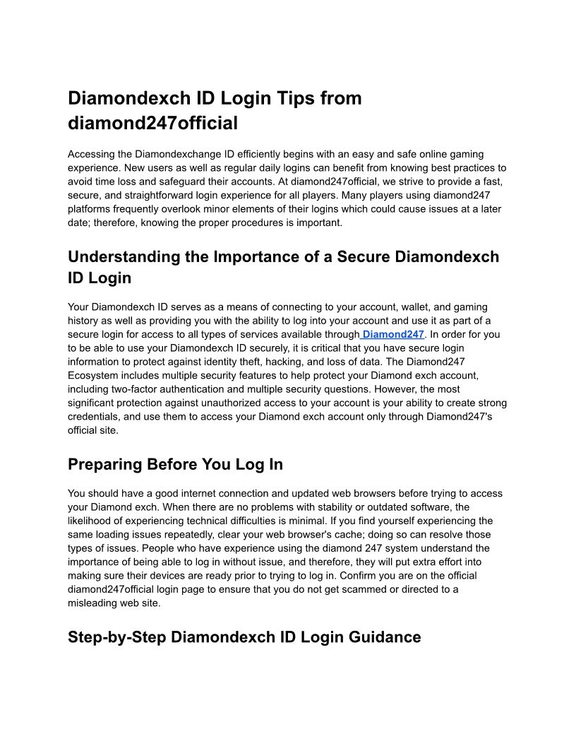 Diamondexch ID Login Tips fr...