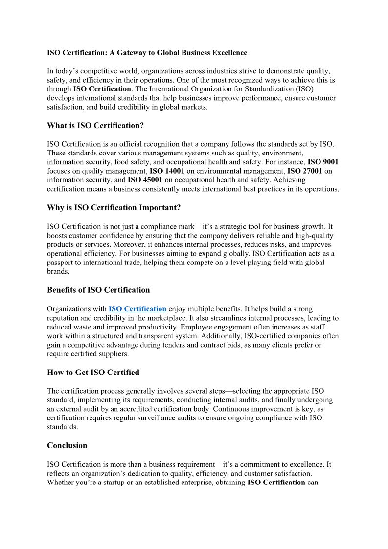 ISO Certification: The Globa...