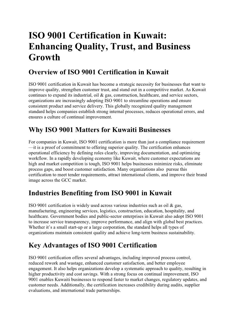 ISO 9001 Certification in Ku...