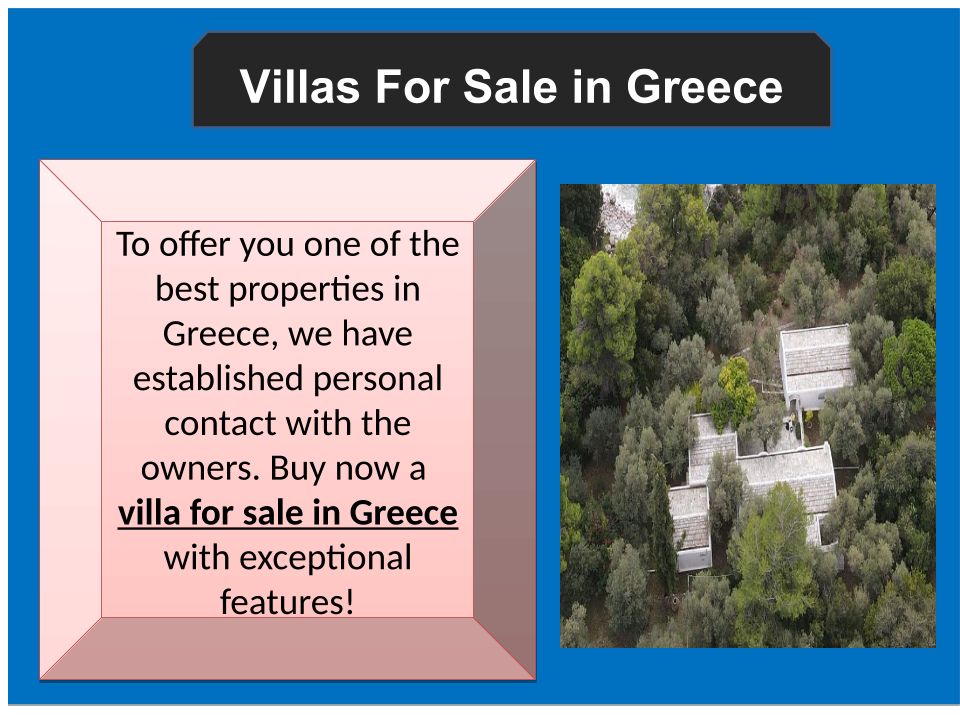 Demeures De Grece, taking advantage of its knowledge of the Greek estate market and legal specificities of Greece.
