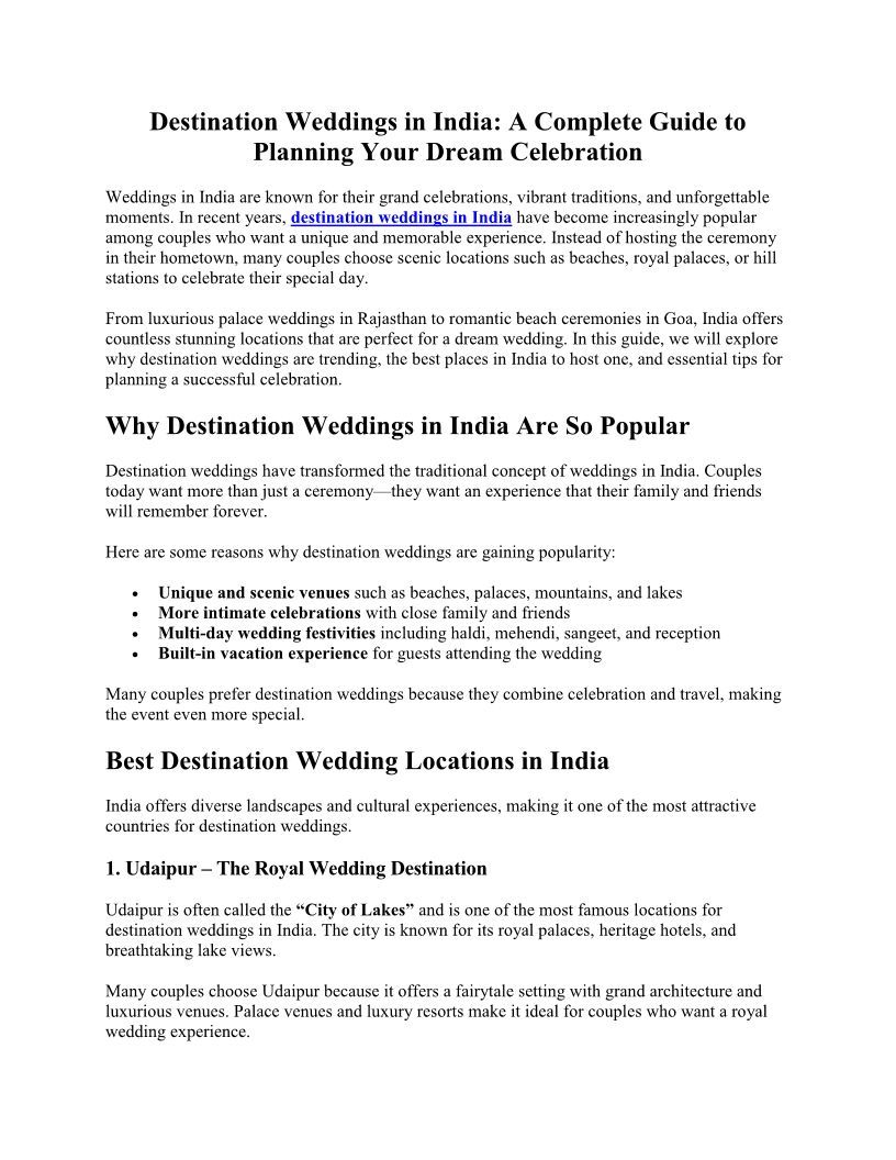 Destination Weddings India
