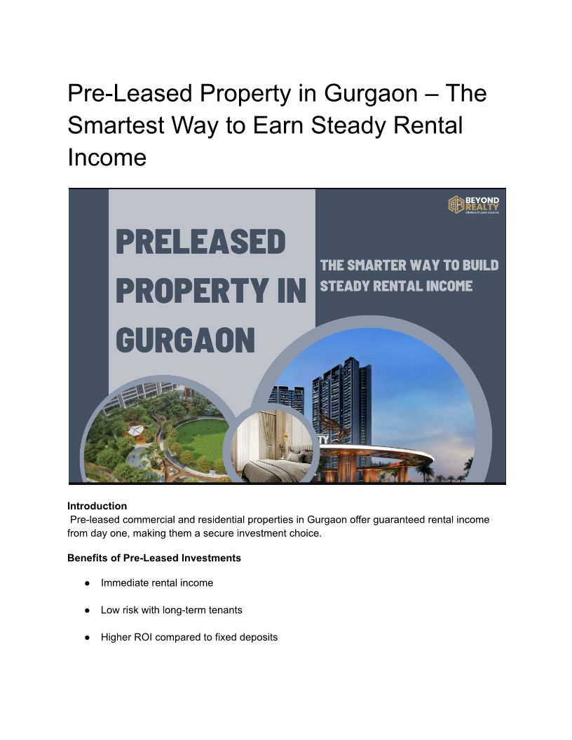 preleased property in Gurgao...
