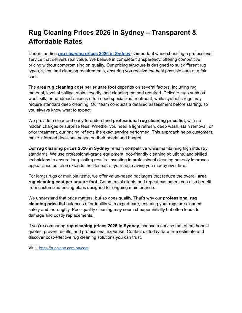 Rug Cleaning Services in Syd...