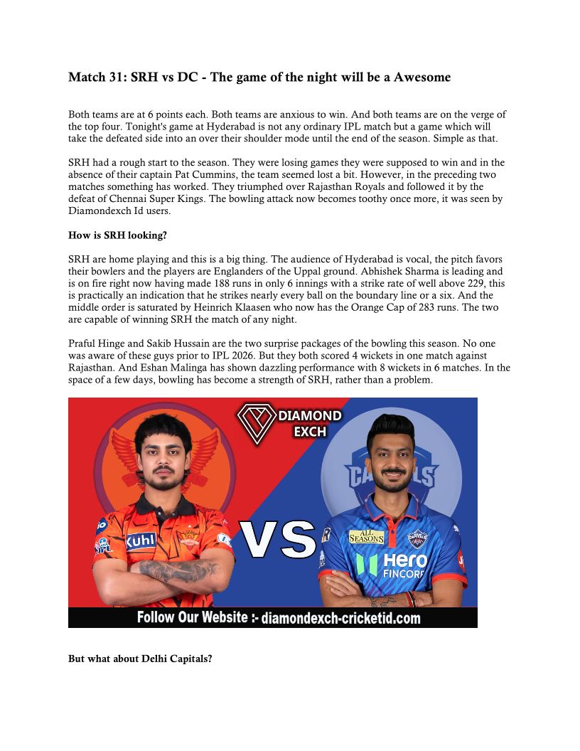 SRH vs DC IPL 2026 Match Pre...