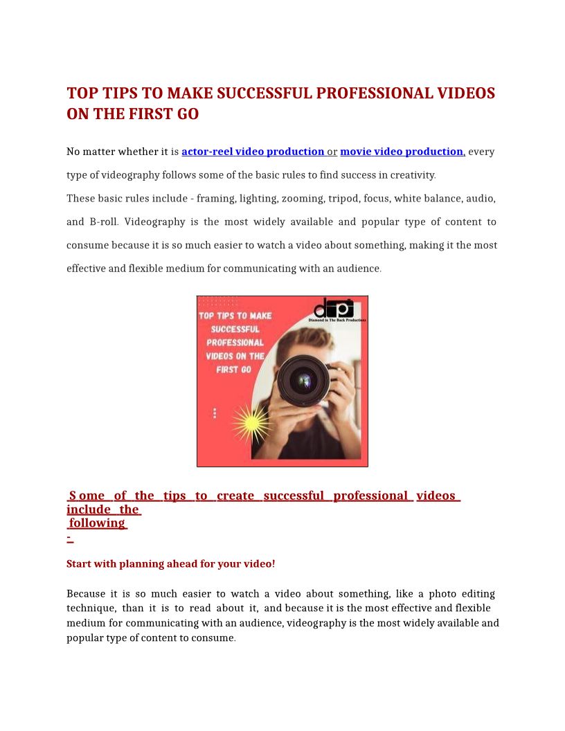 TOP TIPS TO MAKE SUCCESSFUL ...