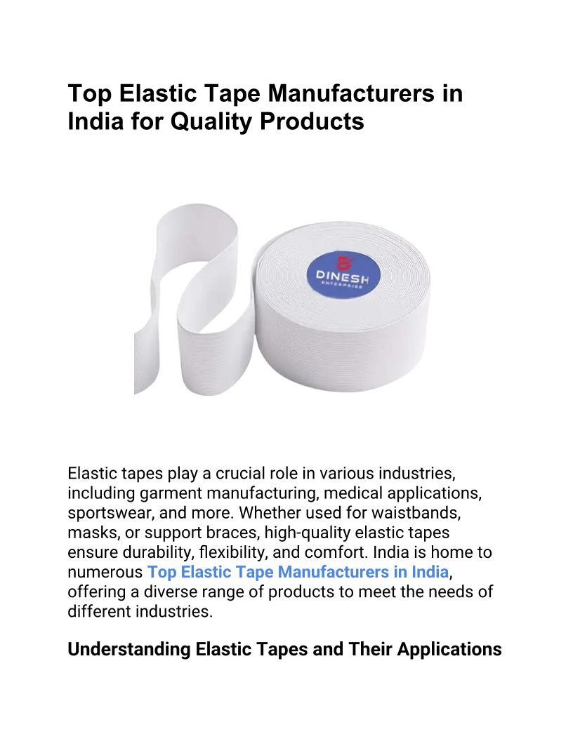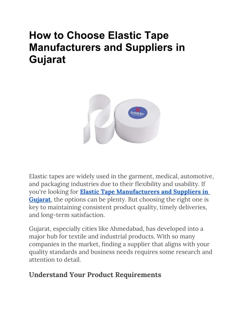 Dinesh Enterprise a renowned manufacturers & suppliers of elastic tape products from Gujarat, India. Our expertise in manufacturing all types of elastic tapes