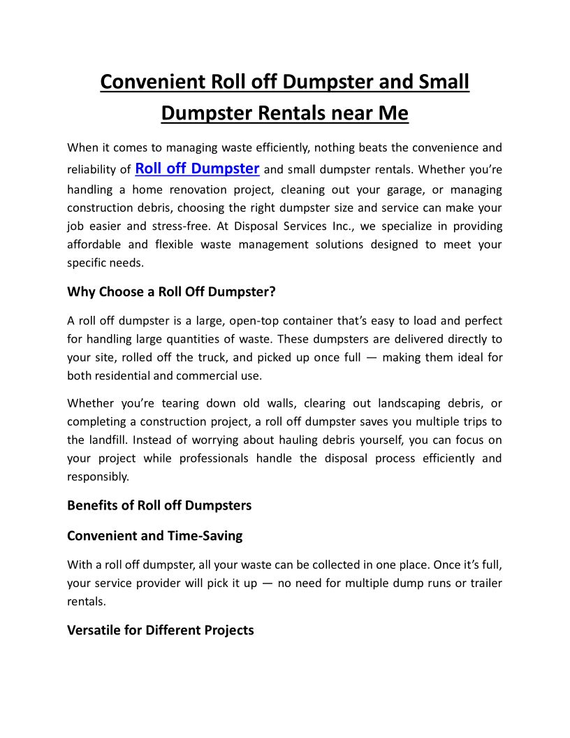 Convenient Roll off Dumpster...