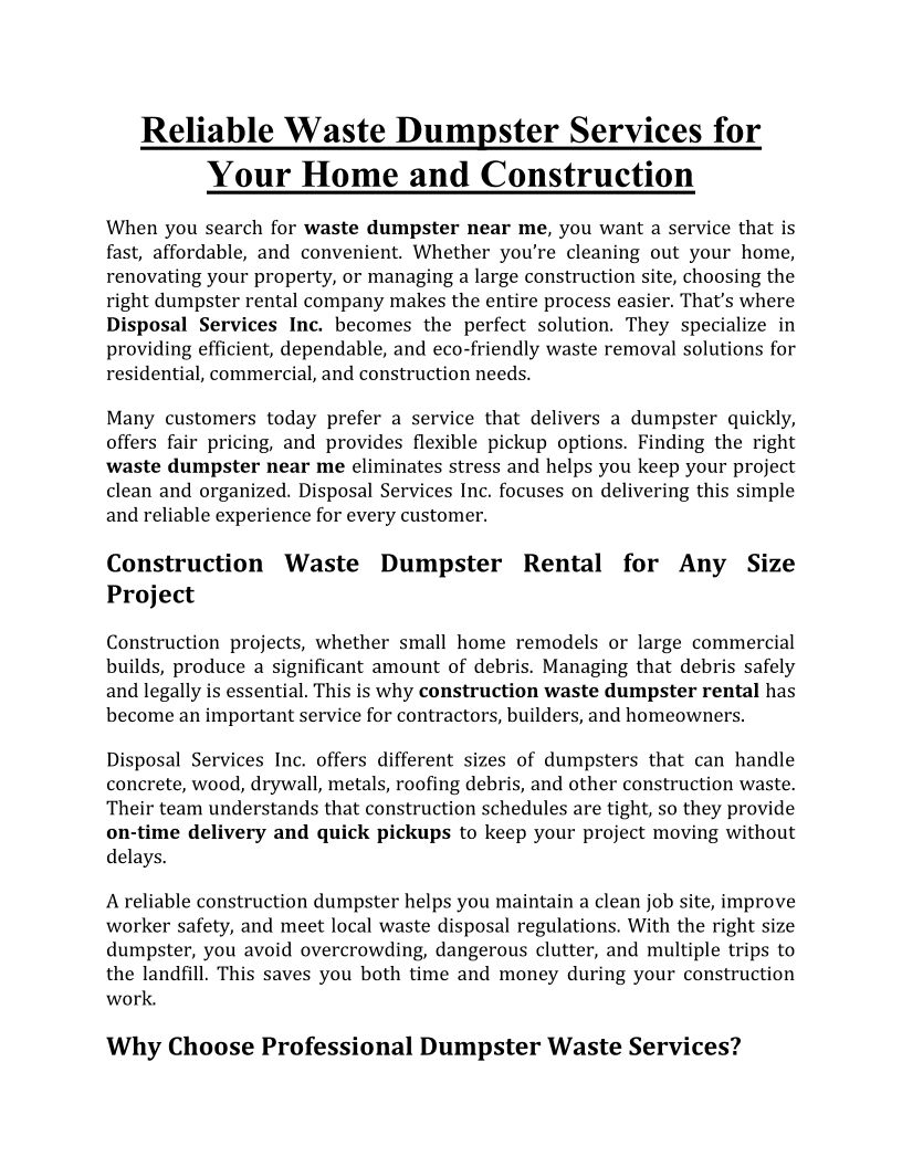 Reliable Waste Dumpster Serv...
