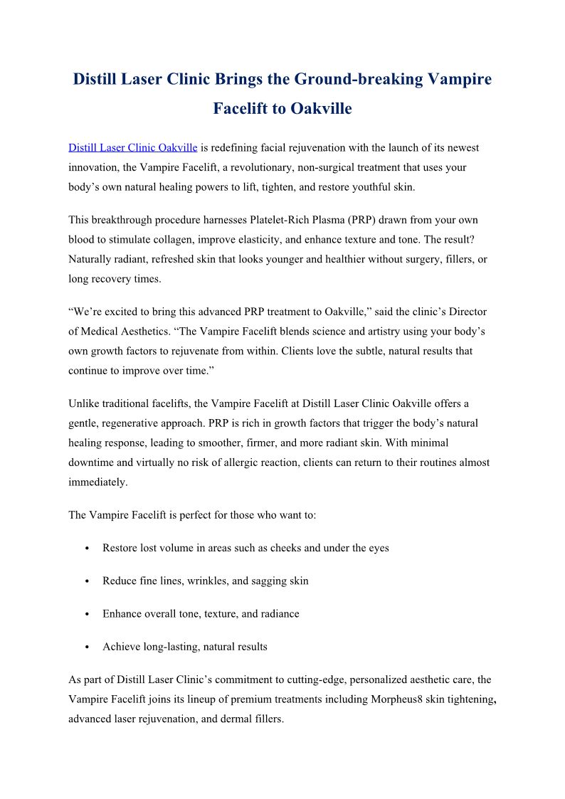 Distill Laser Clinic Brings ...