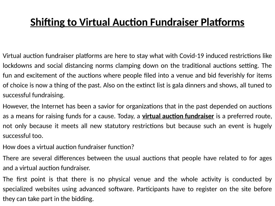 Shifting to Virtual Auction ...