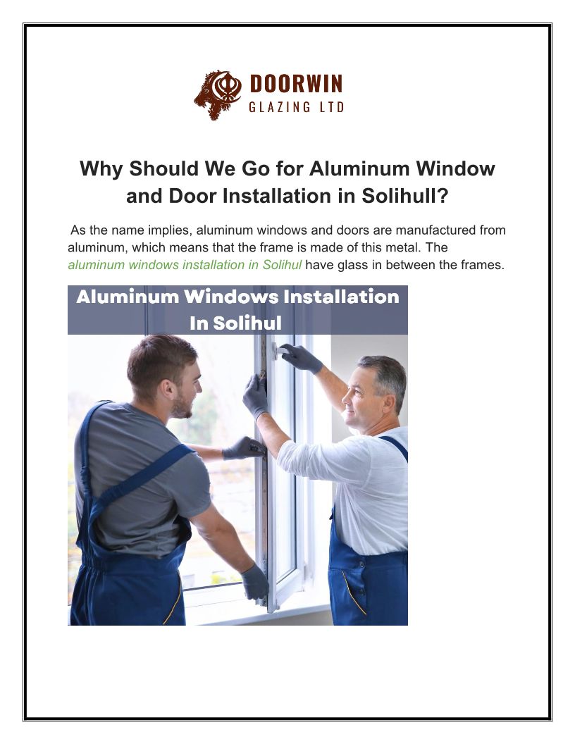 Doorwin glazing company is working in West Midlands, UK. Doorwin Glazing is UK based company supply, installation and Manufacturer Services for Aluminium Doors/
