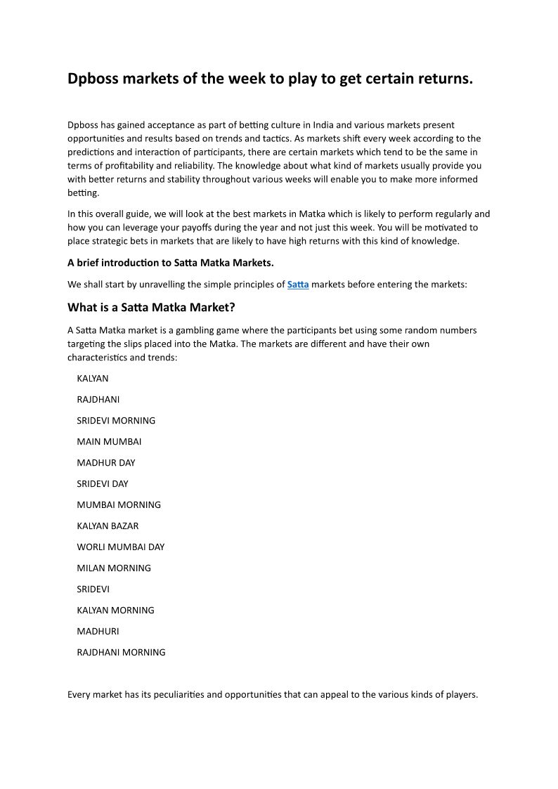 Dpboss has gained acceptance as part of betting culture in India and various markets present opportunities and results based on trends and tactics.