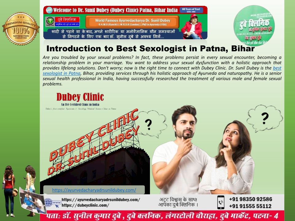 Dr. Sunil Dubey is the best sexologist doctor in Patna, Bihar India who is a specialist in treating male, female, and young sexual problems at Dubey Clinic.