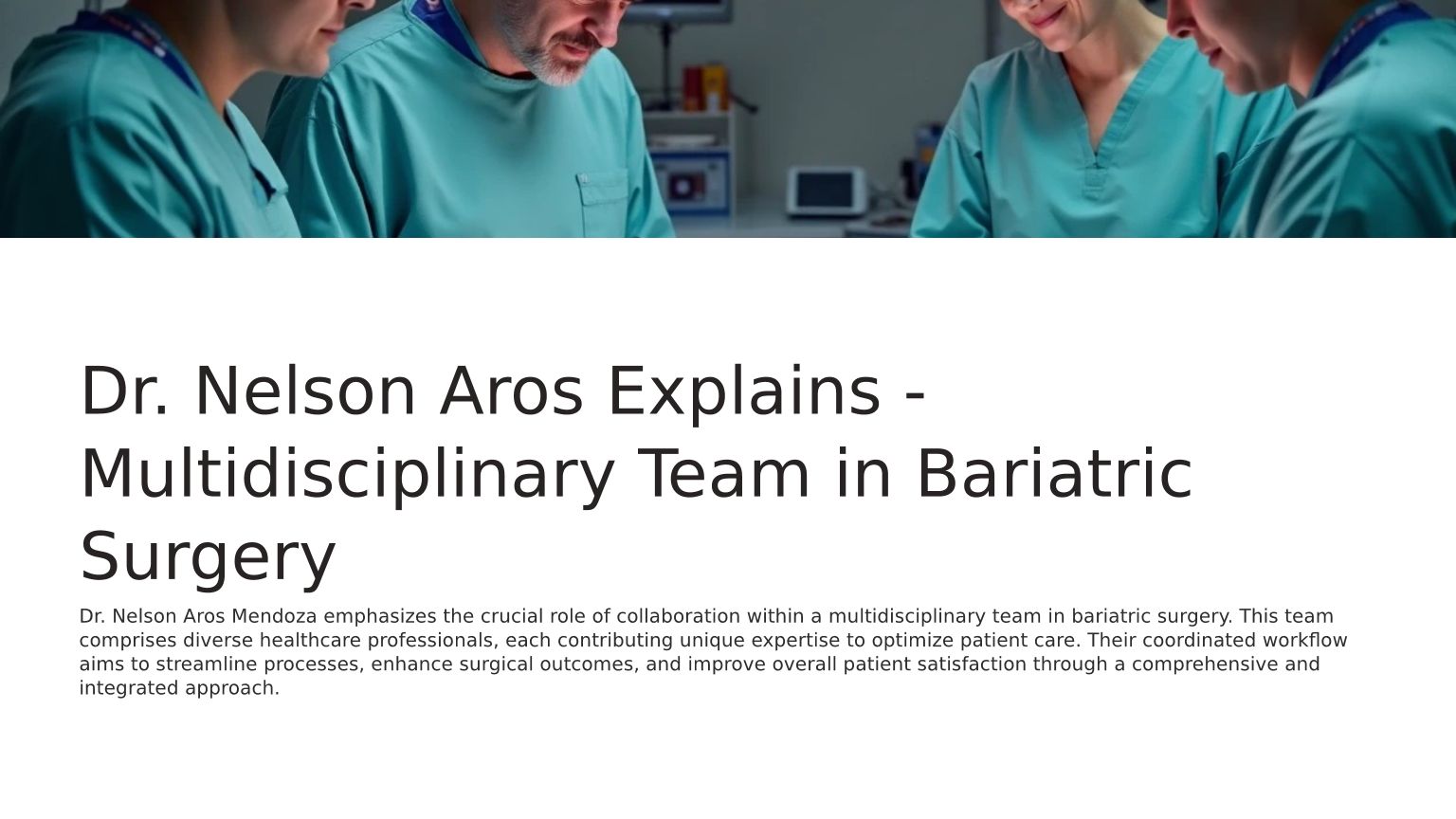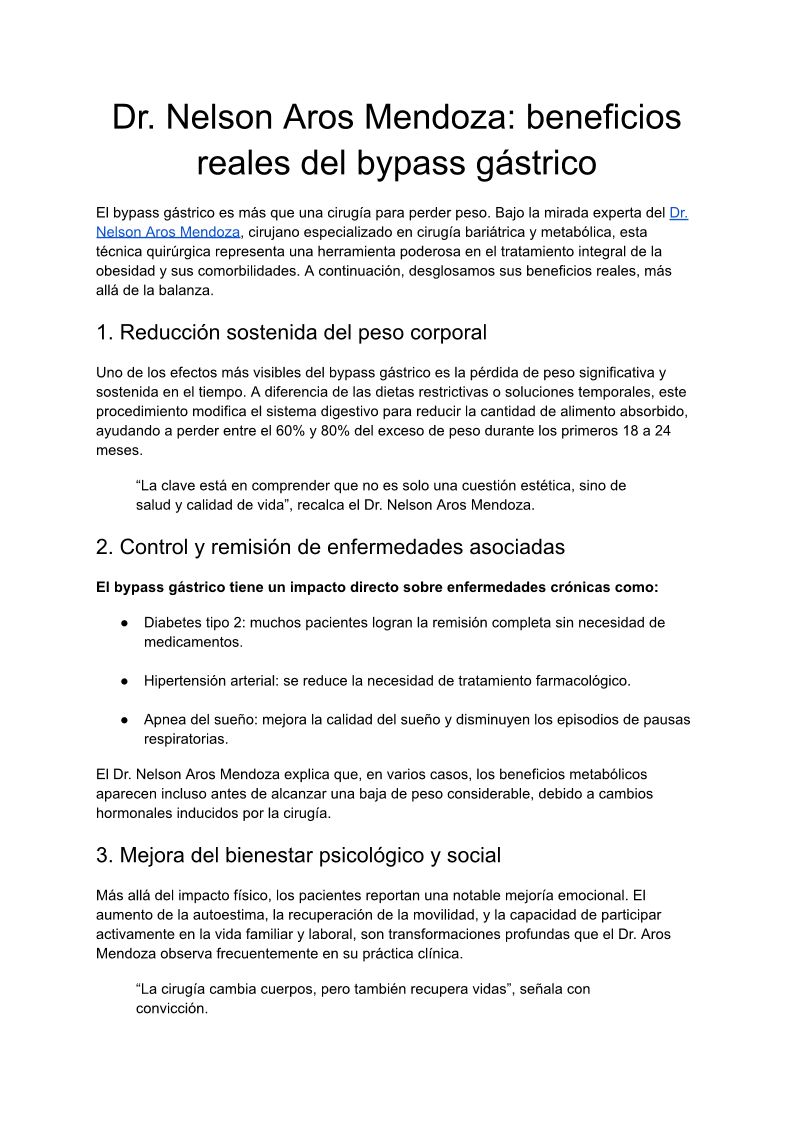 Dr. Nelson Aros Mendoza es cirujano bariátrico. Nelson Aros Mendoza destaca en cirugía laparoscópica y tratamiento de obesidad.
