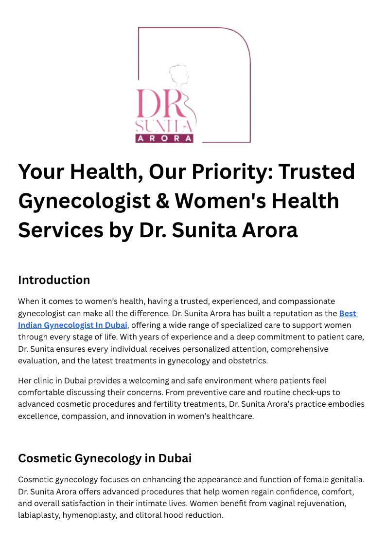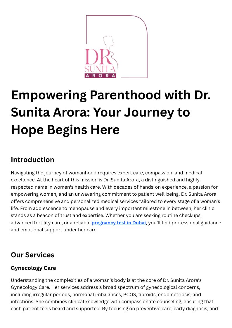 Dr. Sunita Arora is a highly respected Specialist Gynecologist & Obstetrician in Dubai, UAE, with over 24 years of expertise. Internationally acclaimed for her