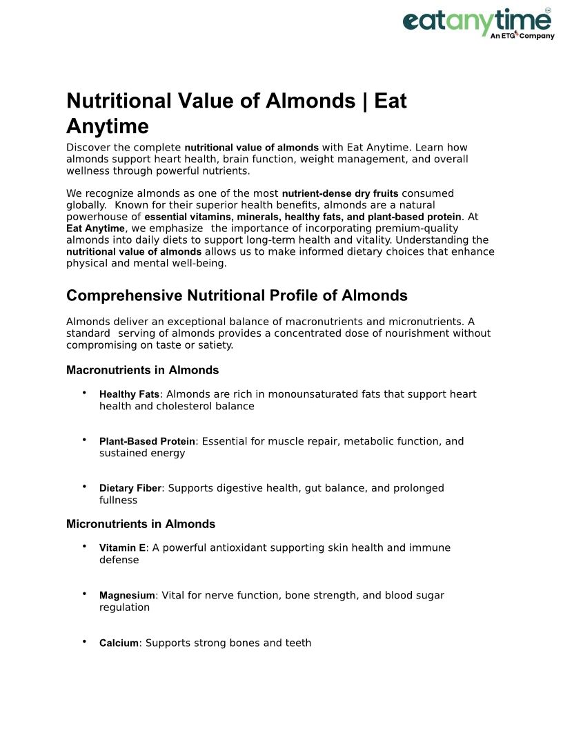 Nutritional Value of Almonds...
