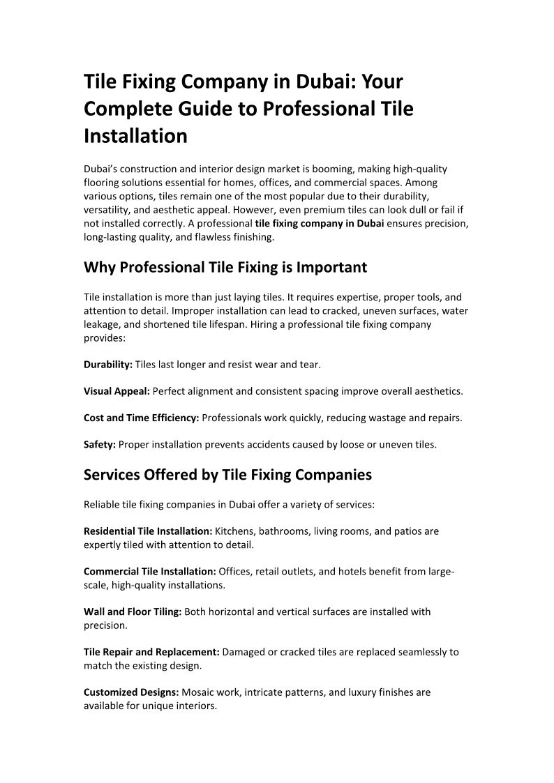 Tile Fixing Company in Dubai...