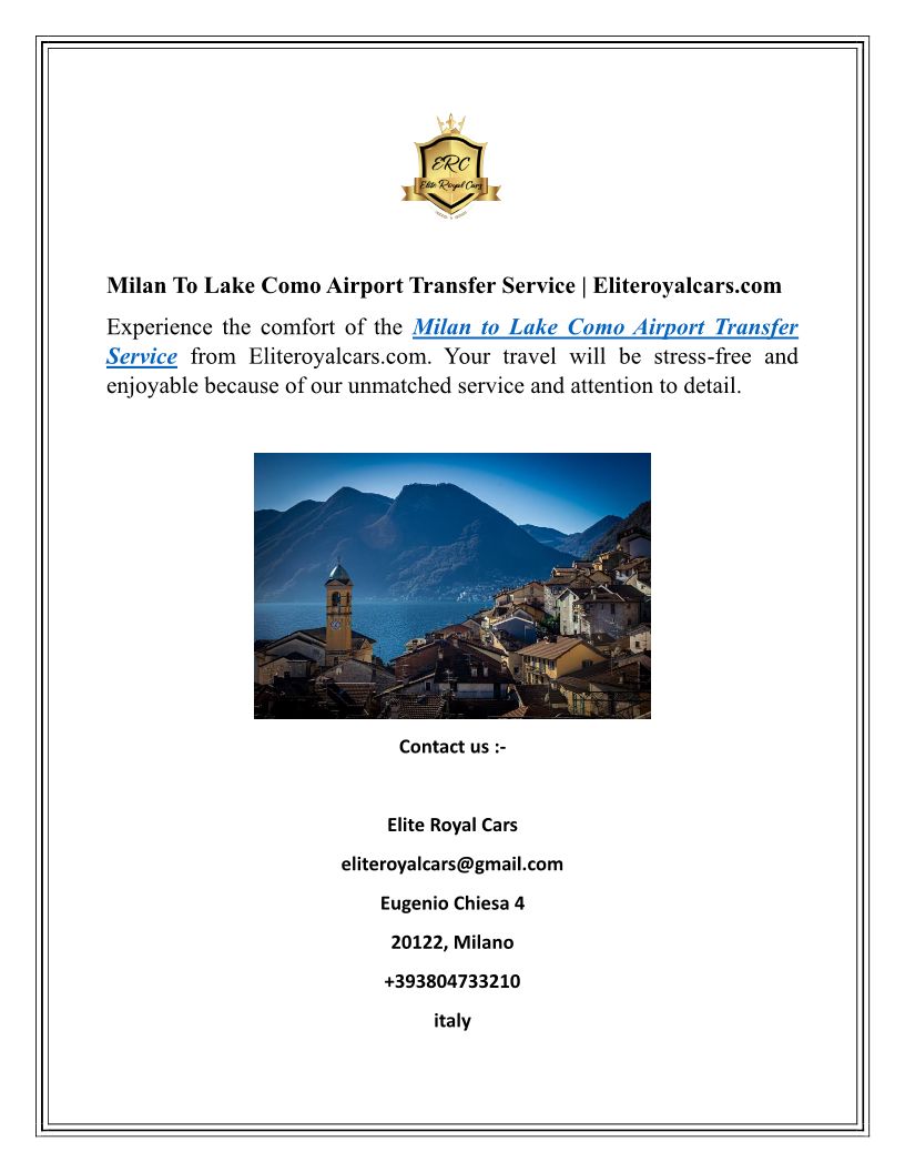 Milan To Lake Como Airport T...