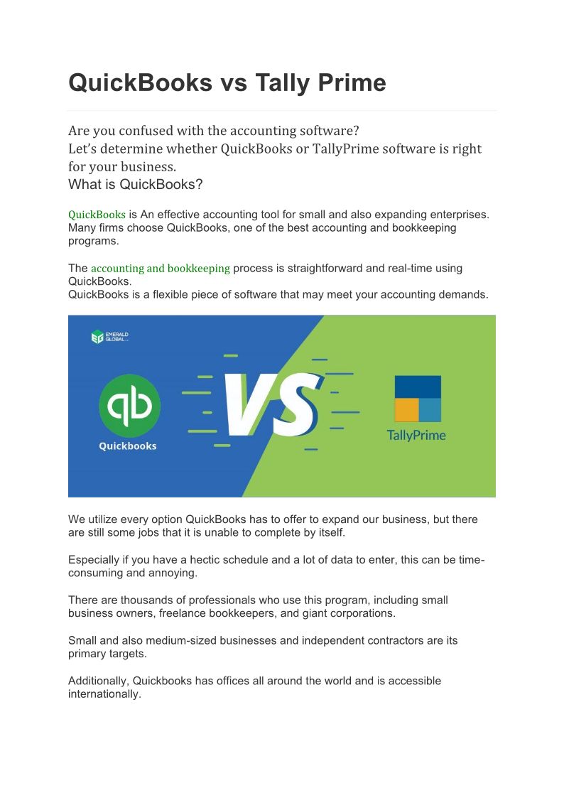 QuickBooks vs Tally Prime
