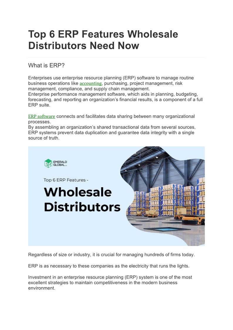 Top 6 ERP Features Wholesale...
