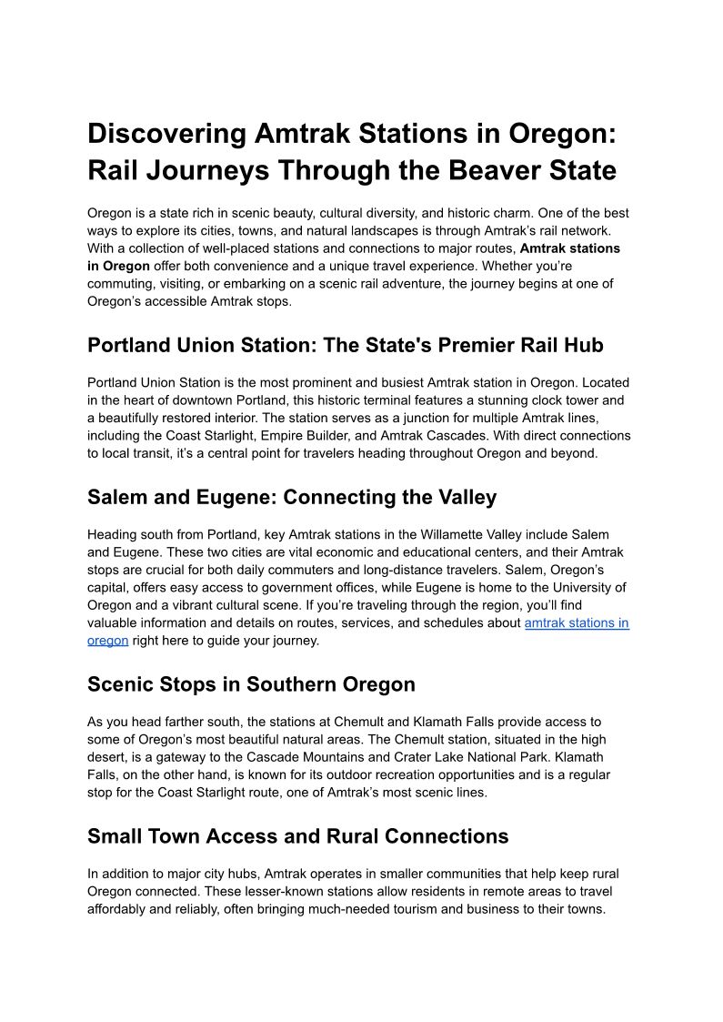 amtrak stations in oregon