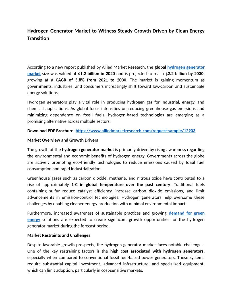 Hydrogen Generator Market