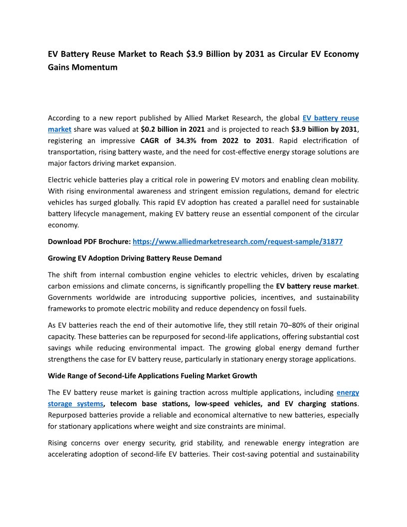 EV Battery Reuse Market
