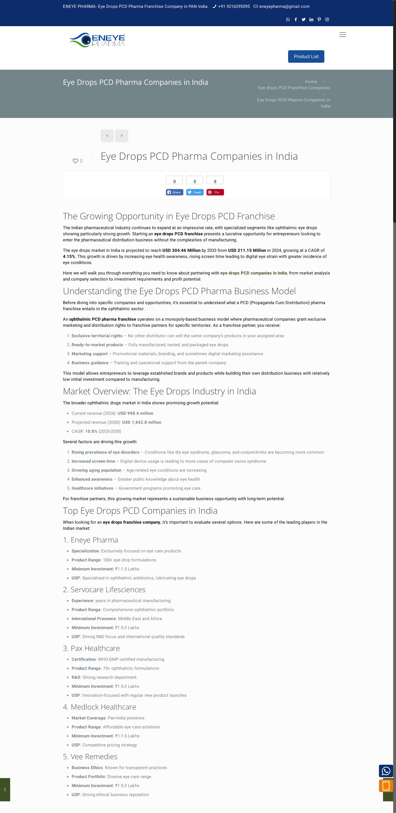 Eneye Pharma is an eye-care PCD pharma company in India with high-quality eye drops and eye solutions and is mostly famous. It is based in Panchkula, Haryana.
