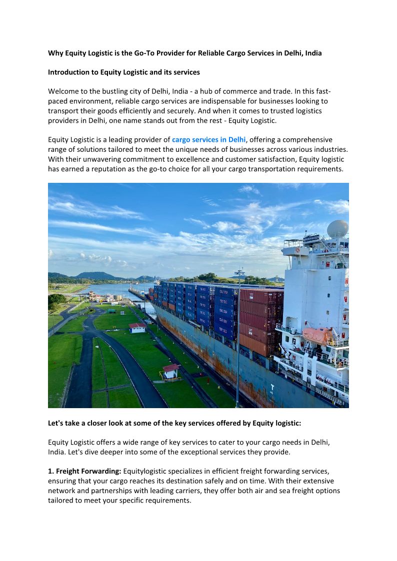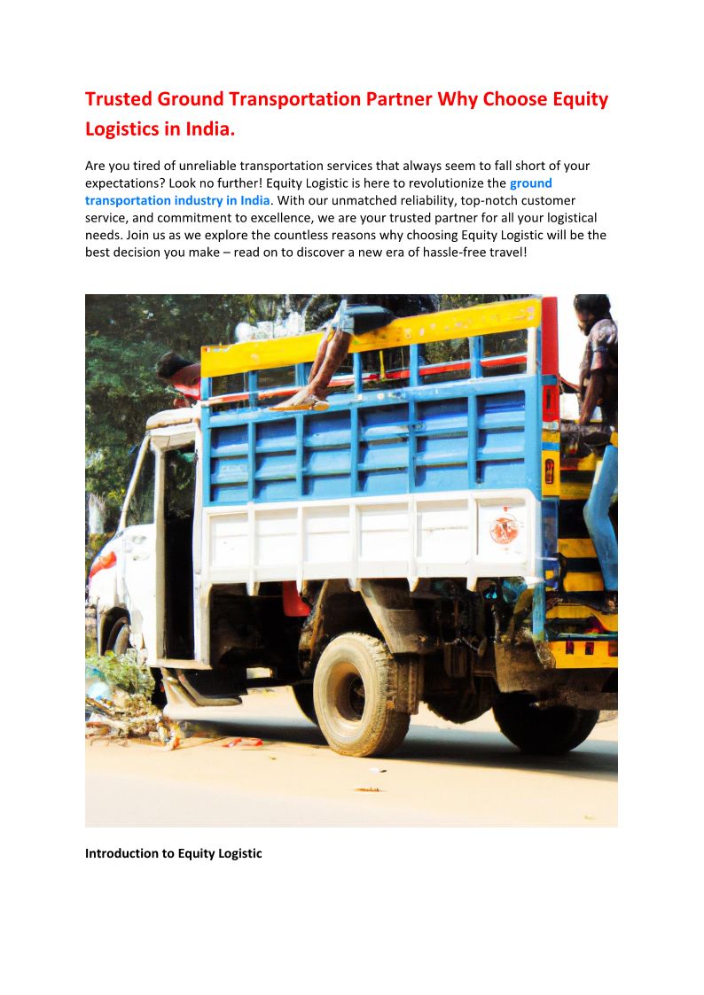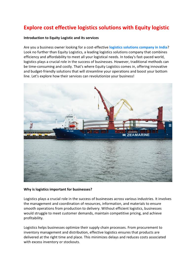 Equity Logistics is a pioneer company in providing complete Logistics & Transportation solutions to pan India. We have been doing the job with our skilled team