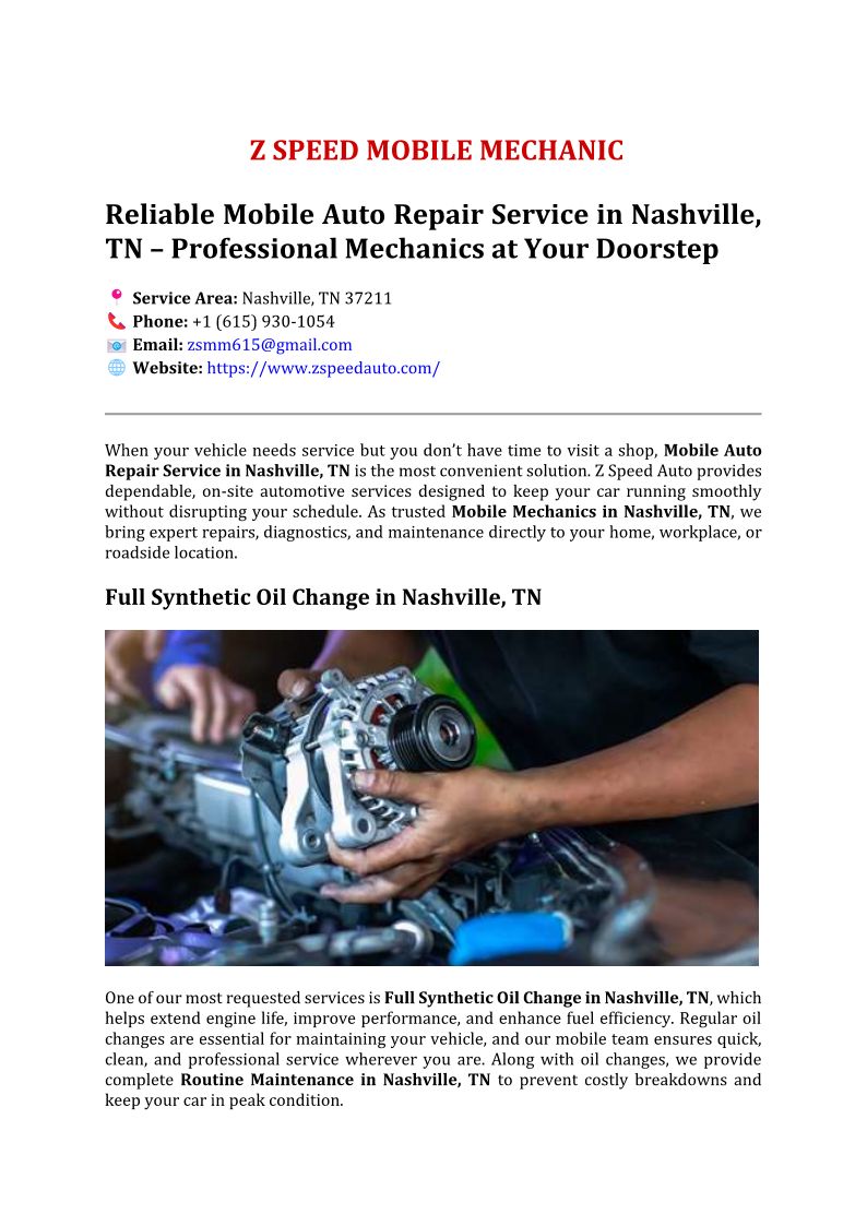 Z Speed Mobile Mechanic - Mo...