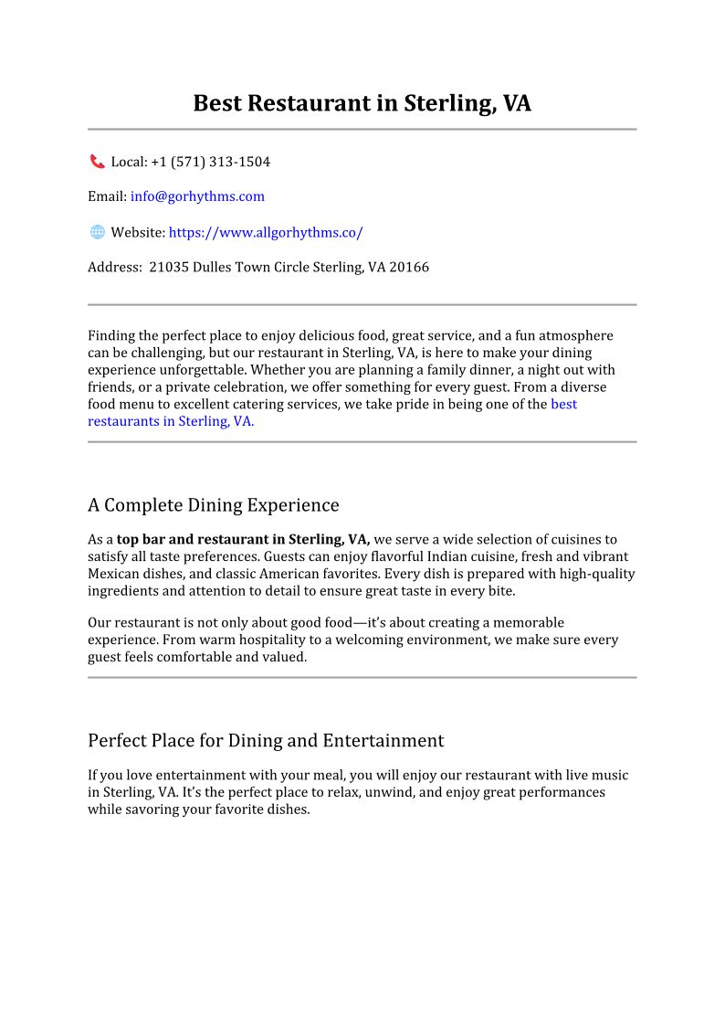 Best Restaurant in Sterling ...