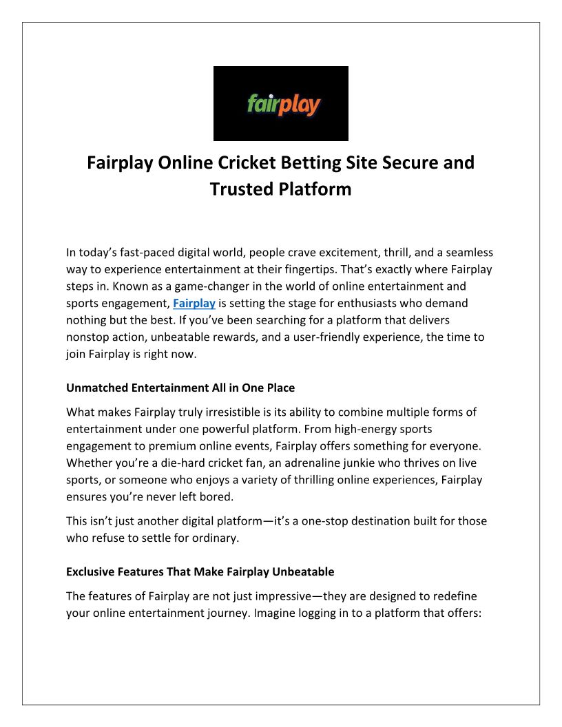 Fairplay Online Cricket Bett...
