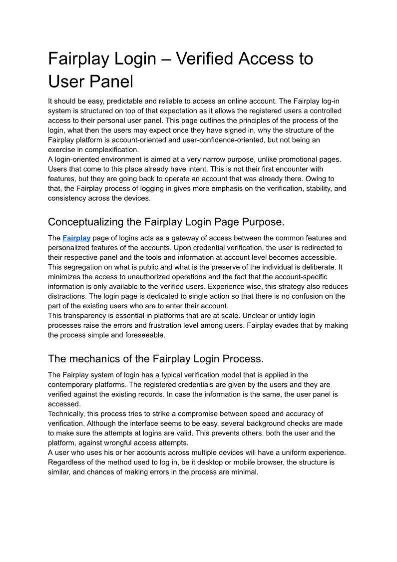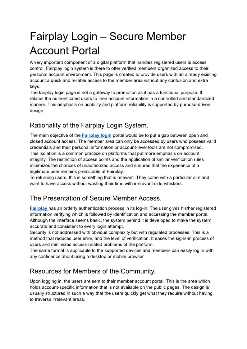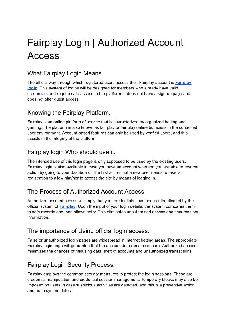 Fairplay Login Access Hub �...
