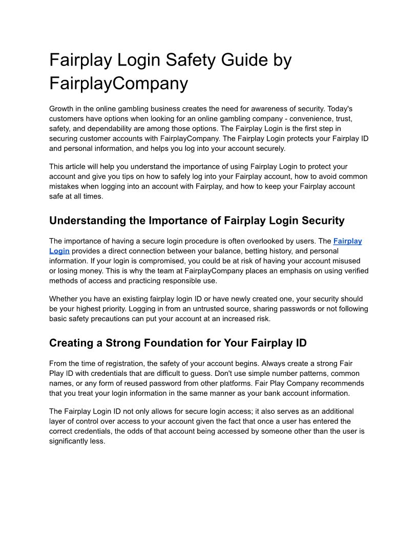 Fairplay Login Safety Guide ...