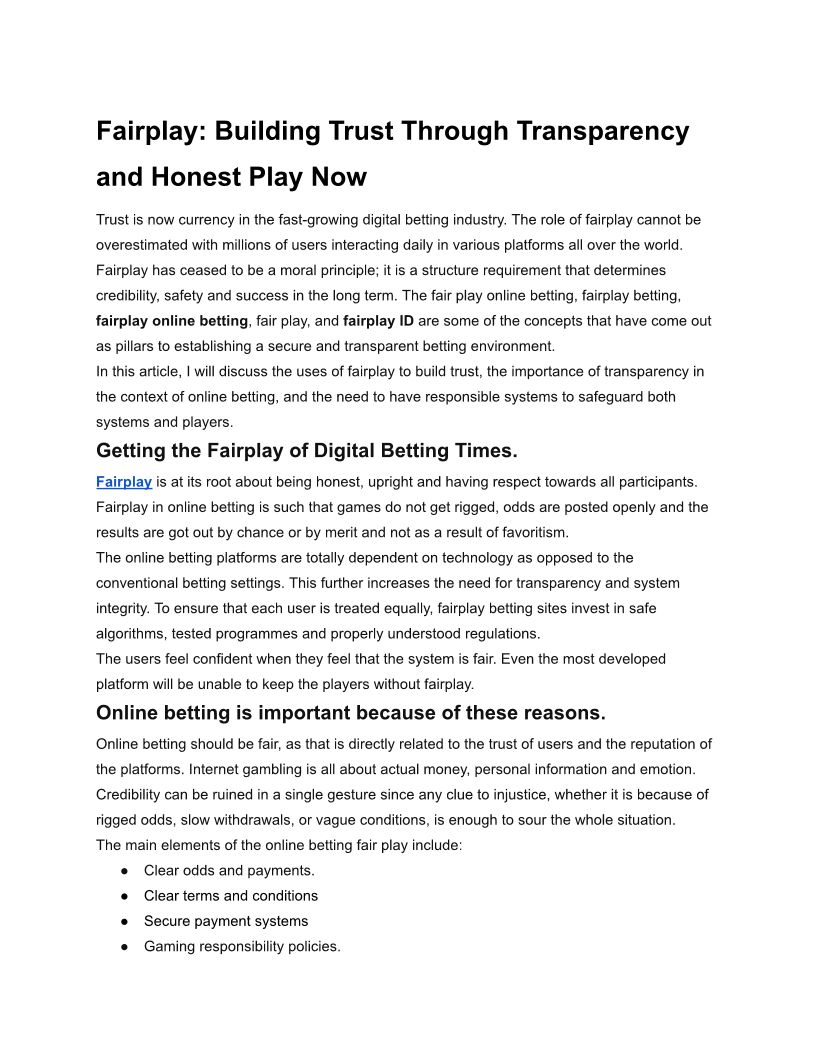 Fairplay Building Trust Thro...