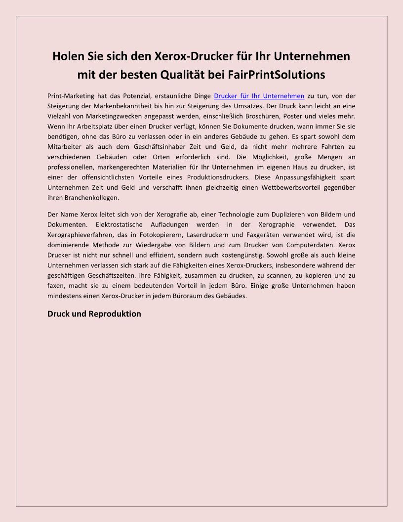 Wir von FairPrintSolutions sind ein junges Unternehmen und vermieten Drucker seit 2019.