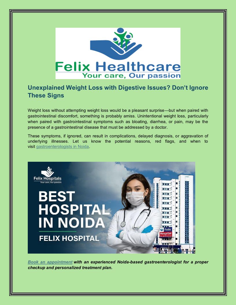 Felix Hospital is a reputed name among the multis-peciality hospitals in the region of Greater Noida, recognized for its provision of quality healthcare