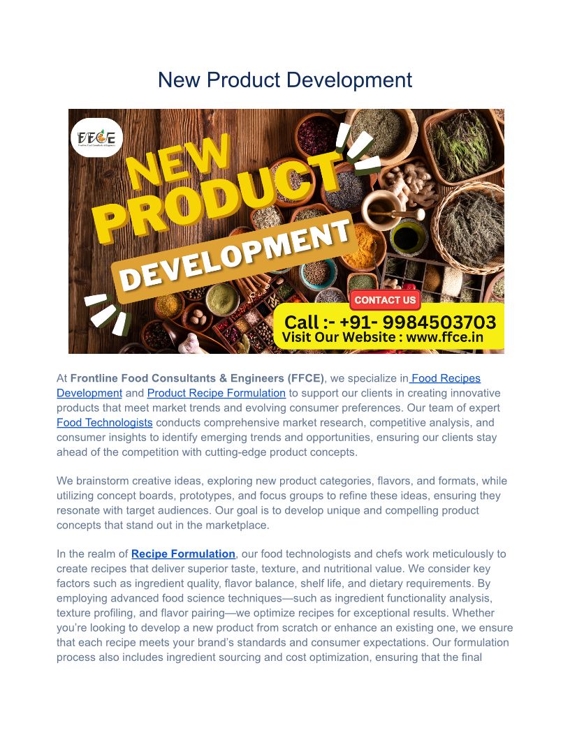 Frontline Food Consultants & Engineers FFCE is a team driven by visionary leaders, consultants & engineers, with a common passion to assist Companies & new Entr