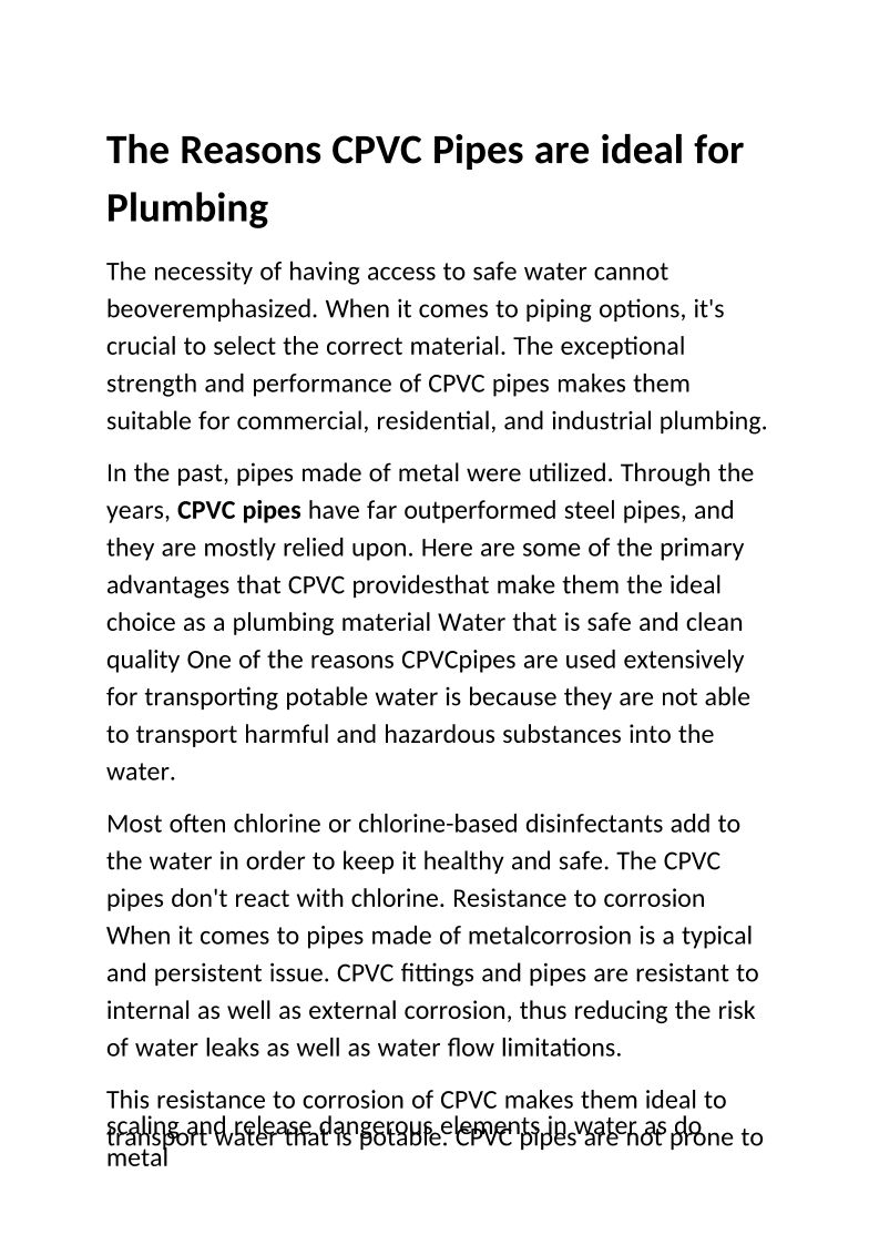 The Reasons CPVC Pipes are i...