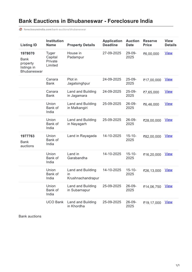 Bank Eauctions in Bhubaneswa...