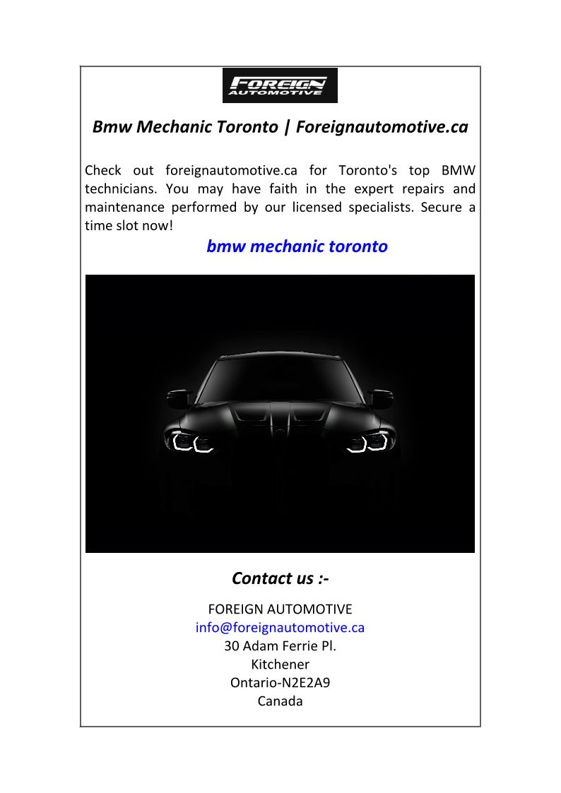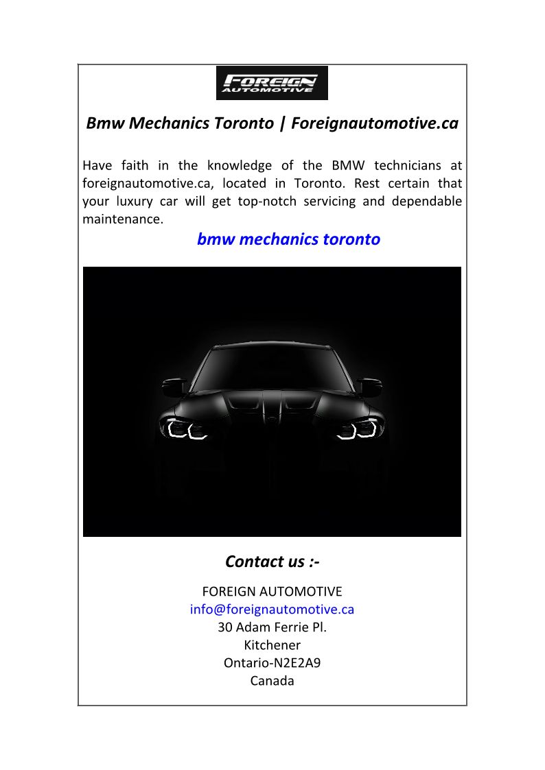 Bmw Mechanics Toronto Forei...