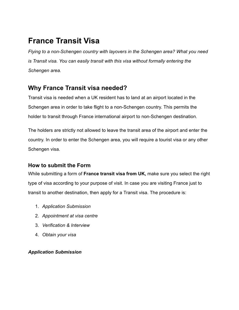 France Transit Visa – Requ...