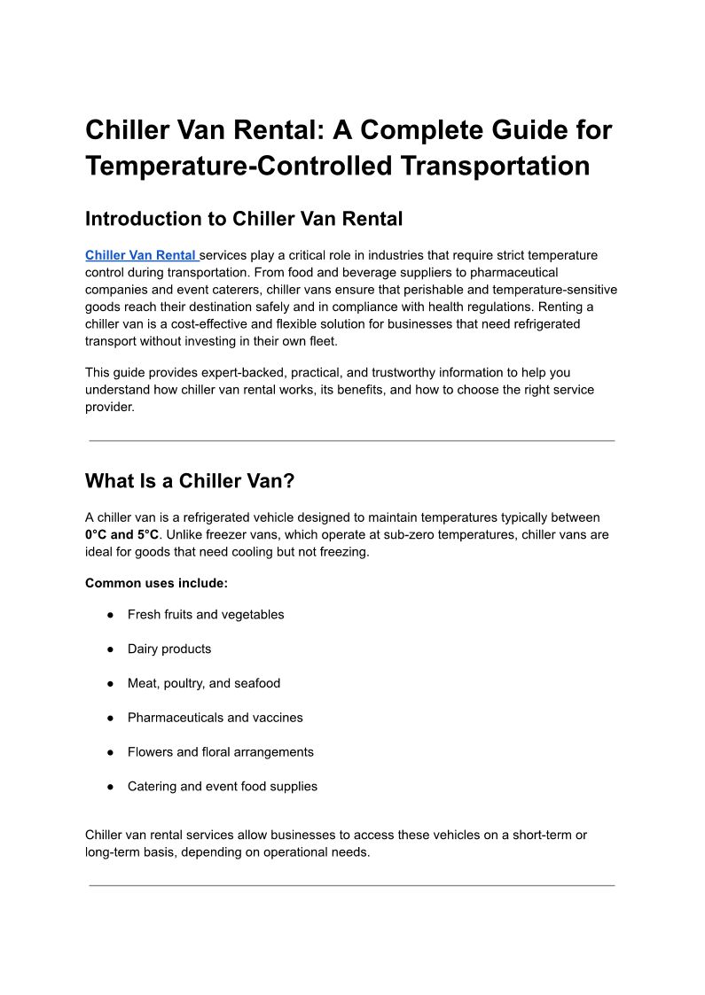 Chiller Van Rental Services
