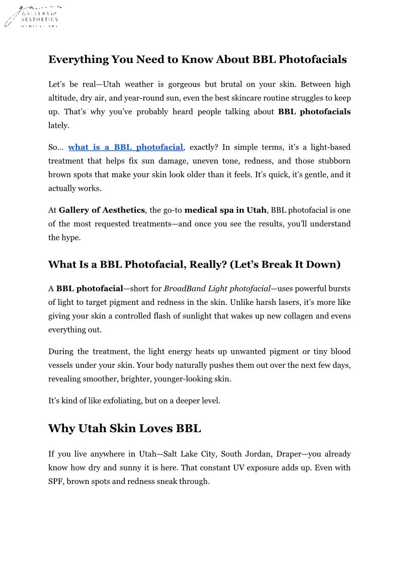 Gallery of Aesthetics offers expert skincare, injectables, and wellness in South Jordan—personalized treatments for natural, radiant results.
