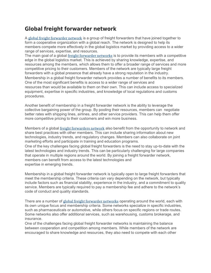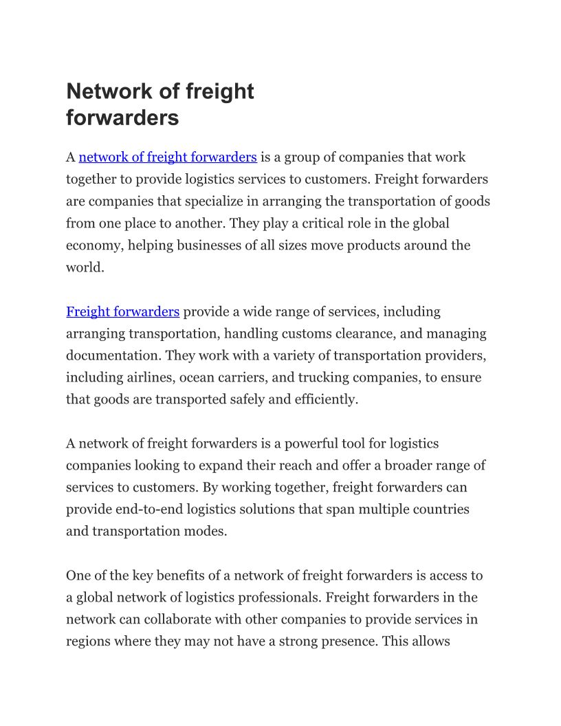 Network of freight forwarder...