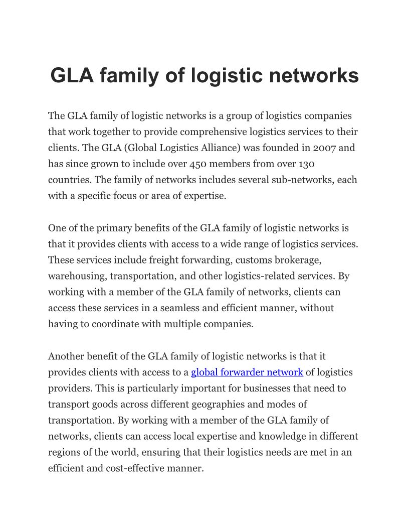 Gla Family of Logistic Netwo...