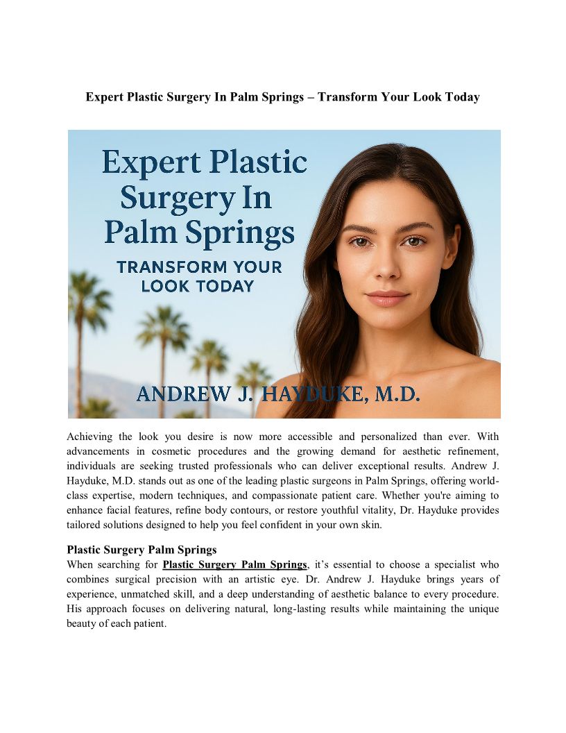 Dr. Hayduke is a board certified plastic surgeon whose practice focuses on aesthetic (cosmetic) surgery. https://drhayduke.com/