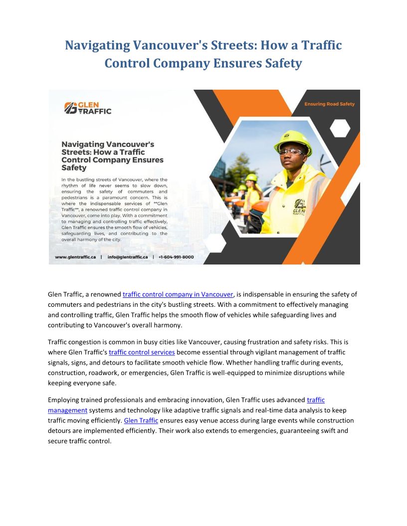 Glen Traffic is a leading provider of expert traffic management services.